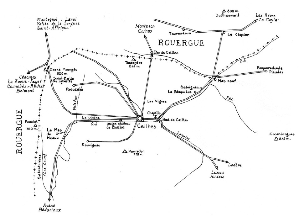 Cependant, malgré leur précarité, les chemins de Ceilhes n’étaient pas négligés dans les relations entre le Languedoc et le Rouergue. Mais ils étaient moins prisés que les liaisons Béziers-Brusque, par Saint-Gervais, ou Lodève-Millau, par Saint-Pierre et le Caylar. En 1693, pour le transport, essentiel à l’époque, du sel de Peccaïs, un arrêt du Conseil d’État avait interdit aux voituriers la route d’Albi et, parmi les trois itinéraires recommandés, deux passaient par Ceilhes, venant de Béziers par Bédarieux, l’un vers Saint-Affrique, l’autre vers Fayet et le Pont-de-Camarès 7.