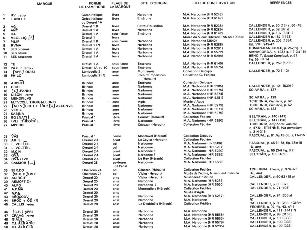 13. A. BOUSCARAS, Marques sur amphores de Port-La-Nautique, dans CAS, III 1974, p. 103-132. (= BOUSCARAS, Amphores de Port-la-Nautique).