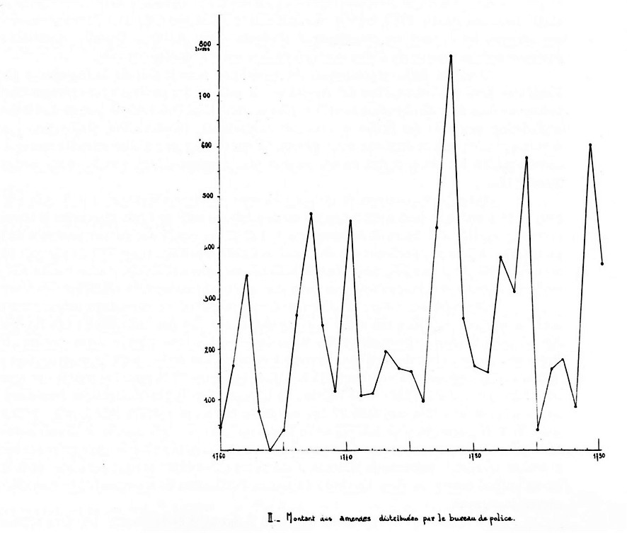 Le maraudage ne représente que 12,8 % des affaires du bureau, la palme revenant aux fraudes des commerçants (33 %) qui paient 61 % des amendes – le boucher à lui seul, parce qu’il essaie perpétuellement de faire passer des charognes pour de la viande « bonne grasse et de recette », paie 1535 Livres (20,3 %) -. Les maraudeurs n’en paient que 3,67 % ; 211 jours de prison leur reviennent (6,44 loin derrière la jeunesse turbulente et querelleuse qui écope de 1982 jours à l’ombre (60,5 %).
