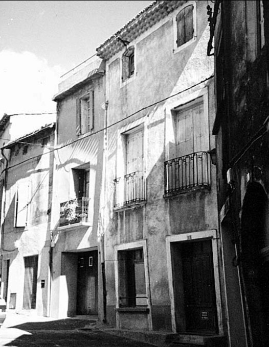 Depuis longtemps morcelé en de nombreuses parcelles, il présente onze façades différenciées sur rues. Certaines attirent le regard, façade ornée de la fin du 16e siècle (Fig. 1) (inscrite à l’inventaire supplémentaire des Monuments Historiques en 1963), fenêtres à meneaux (Fig. 2), cheminée médiévale saillante (Fig. 3), la plupart des façades offre le banal aspect de maisons de village languedocien (Fig. 4). Et ce n’est qu’après un examen plus approfondi que l’on découvre des moulures anciennes.