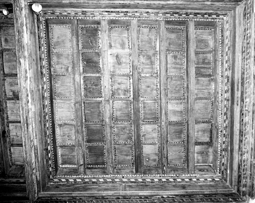 Situé dans une salle de 6 x 9 mètres, le plafond présente six caissons il est recoupé en trois travées dans le sens transversal et en deux dans le sens longitudinal.