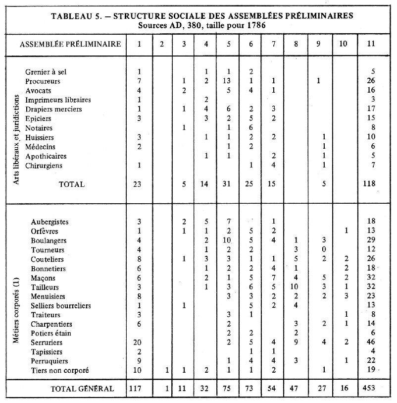 17. Cf. infra, tableau 4, composition sociale des délégués et tableau 5, structure sociale des assemblées préliminaires.