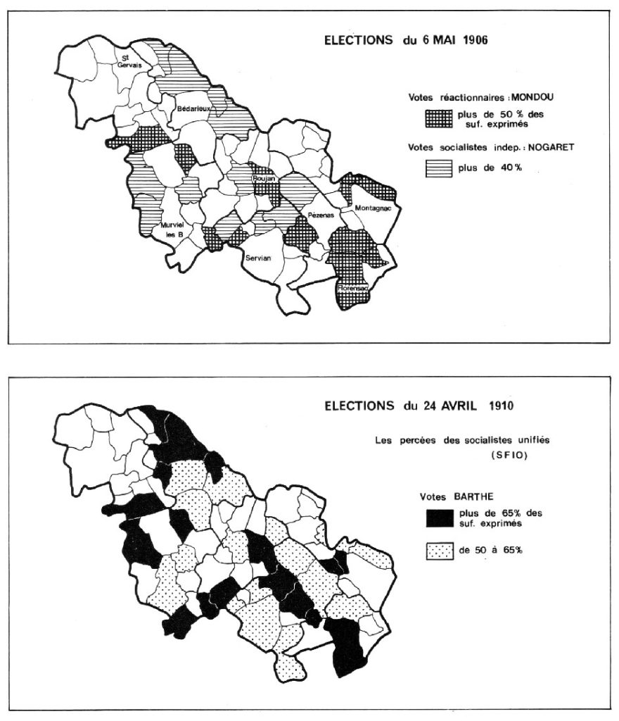 58. Comme celle menée dans la circonscription voisine de Béziers II par Marcel Cachin en 1906 (voir J. Sagnes, Gauche marxiste et gauche jacobine en biterrois à travers les campagnes de Marcel Cachin et Louis Lafferre en 1906, in Gauche et droite…, op. cit., p. 236).