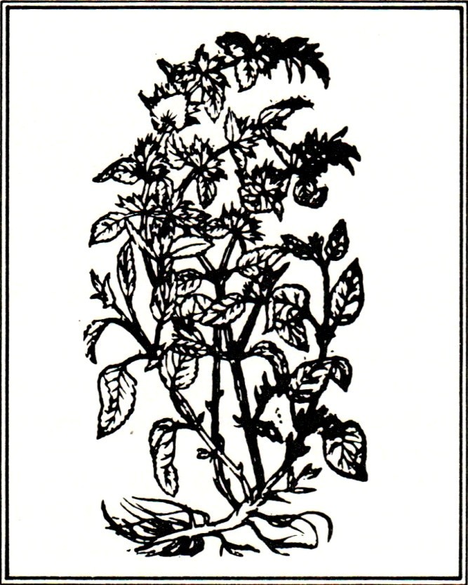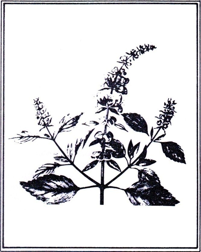 - Fleurs blanches ou pourpres en épis, tiges ramifiées, feuilles dentelées, odeur mentholée pénétrante.