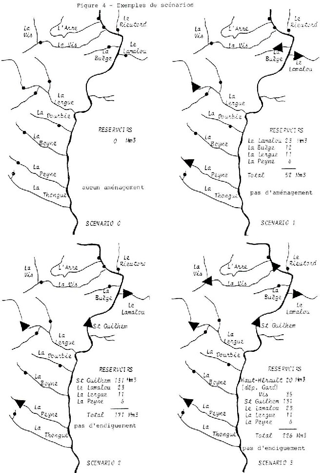 Une méthode de simulation de scénarios répond bien à ce souci. Un échantillon représentatif des crues ayant provoqué des inondations dans les dernières cinquante années a été constitué à partir des données de crues dont les enregistrements étaient suffisants, et les natures assez diverses pour couvrir tous les aspects possibles de déroulement. Après la définition d’un aménagement donné, l’ordinateur simule le déroulement de l’ensemble de ces crues, et visualise les effets qu’aurait provoqués l’aménagement s’il avait existé depuis cinquante ans.