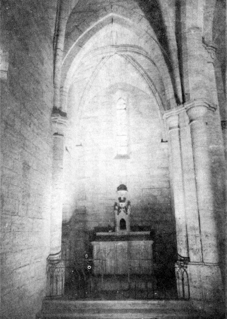 Le travail de restauration proprement dit consistait à mettre à nu un bel appareil de pierres de taille enduit de chaux blanche à plusieurs reprises dès le XVIIIe siècle. L’importance des travaux à réaliser obligeait à limiter la première intervention au transept nord, à la chapelle Saint-François et au chœur de l’église. C’est dans le transept et la chapelle que l’on dût d’abord monter l’impressionnant échafaudage prêté par la société M.E.F.R.A.N., qui permettrait d’atteindre la voûte haute de plus de 8 mètres. Le décrépissage à l’aide de piquettes, de « chemins de fer » et de brosses métalliques pouvait alors commencer, décrépissage vite interrompu par la présence sous l’enduit de chaux, d’une épaisse couche de ciment (« remède » contre l’humidité du jardin du château attenant), que l’on dût attaquer au burin et au marteau. Toutefois, la découverte dans ce mur d’une ouverture surmontée d’un linteau de pierre de grande taille fut une belle récompense. Il s’agirait là probablement, de la porte dite « porte des morts » que l’on retrouve dans de nombreuses églises cisterciennes et qui s’ouvrirait sur l’ancien cimetière aujourd’hui occupé par le jardin du château. Des sondages à l’extérieur permettraient d’assurer cette découverte.