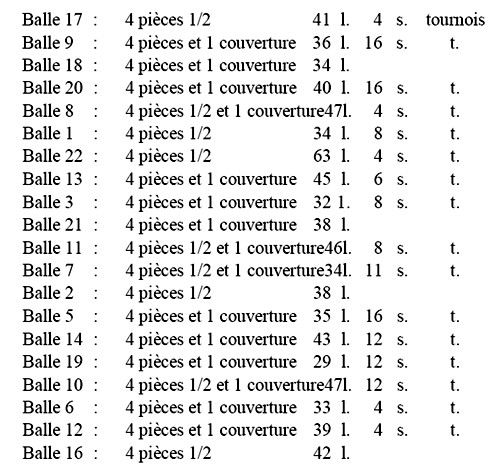 7. Ibid. fos 28 v et 30 v. Une marque – ici un signe ou une estampille ayant la forme d’un dessin (*-) était comme de coutume apposée sur les balles.