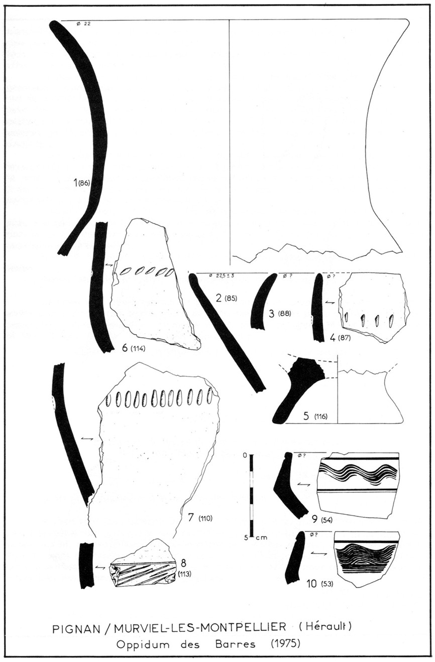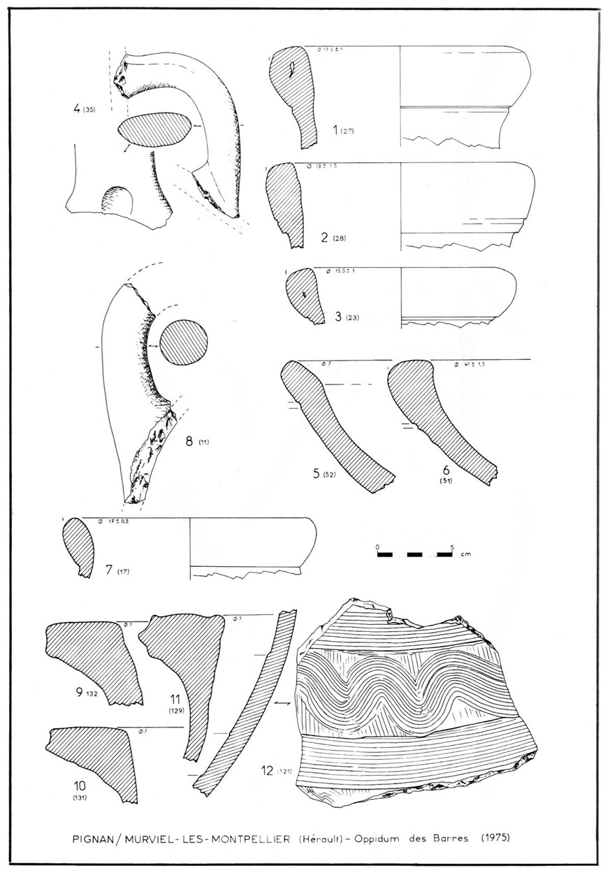 4 J.-C. M. Richard, La région montpelliéraine à l’époque préromaine (750-121 av. J.-C.) Bruxelles, 1973, p. 13-19, fait le point des découvertes pour l’ensemble de la région et donne la bibliographie détaillée.
