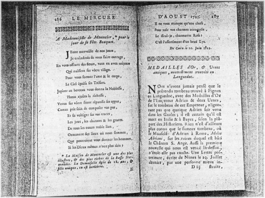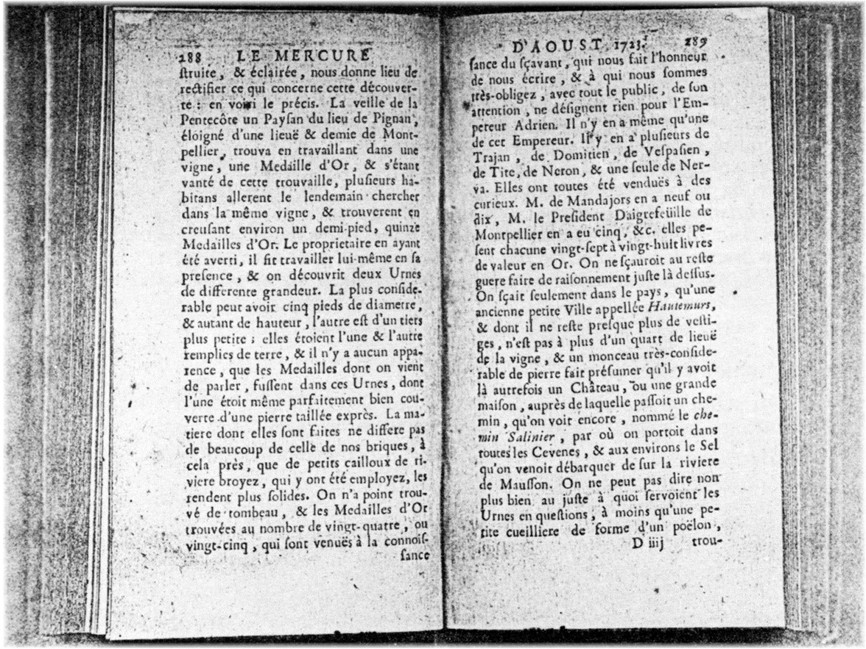 15 Le Mercure de France, août 1723, p. 287-290. Ce texte a été signalé par A. Blanchet, Bulletin archéologique, 1941-1942, p. 221-223, pour la première fois, à notre connaissance.
