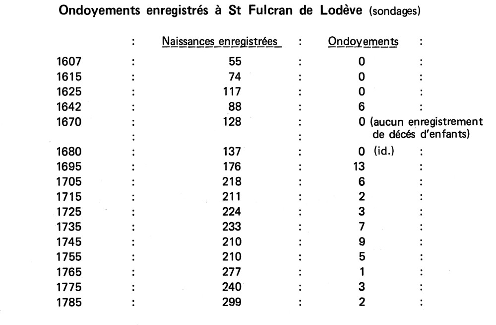 Il paraît évident qu’il y a des oublis dans les procès-verbaux de baptême (la natalité à Lodève n’a pas triplé en 2 siècles. Le désordre chronologique des formules de baptême montre qu’ils étaient parfois enregistrés plus tard).